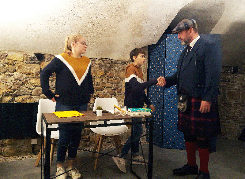 Des enfants qui aident leur père comme ils peuvent avec leur anglais scolaire, une psy autocentrée qui ne sert à rien, une épouse déjantée qui empire la situation, une traductrice dépassée par les événements, bref : un imbroglio digne d'un vaudeville comme on les aime !